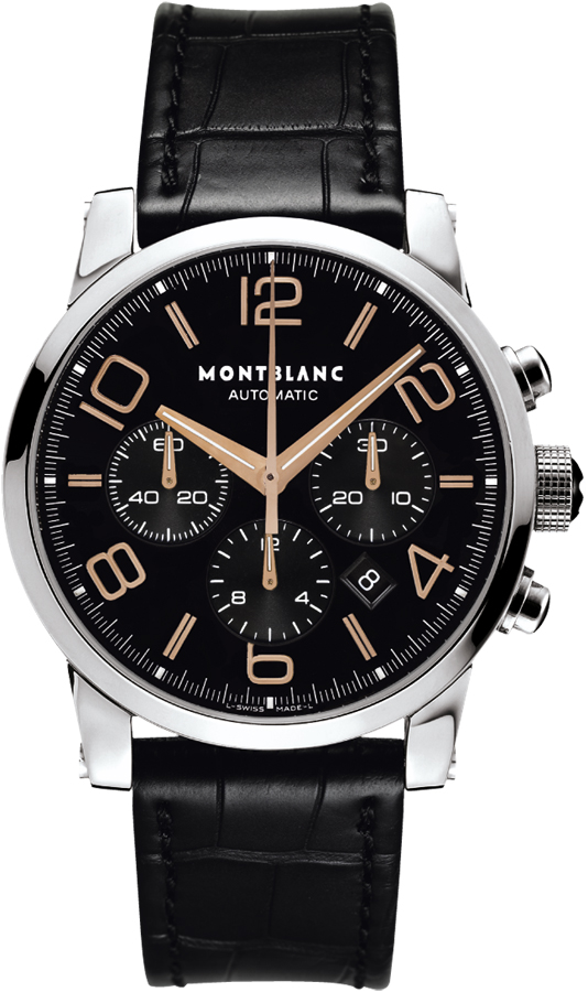 Những đường nét rõ ràng của TimeWalker Chronograph kết hợp các giá trị truyền thống với tính thẩm mỹ của thế kỷ 21. Chúng mang ảnh hưởng không thể nhầm lẫn của hình thức và chức năng lấy cảm hứng từ Bauhaus một cách rõ ràng cũng như các đường nét kiến trúc có đường viền táo bạo, thoáng đãng chỉ có thể thực hiện được nhờ vào các vật liệu và phương pháp hiện đại. Vỏ của chiếc đồng hồ này trông vẫn cực kỳ nhẹ mặc dù có đường kính ấn tượng là 43 mm. Điều này ít nhất là do hình dáng năng động của đồng hồ và những đường viền uyển chuyển của các vấu, được chế tạo khung xương một cách tỉ mỉ. Bộ máy cơ tự lên dây có chức năng bấm giờ tích hợp là sự thể hiện tinh tế nhất của nghệ thuật chế tạo đồng hồ.