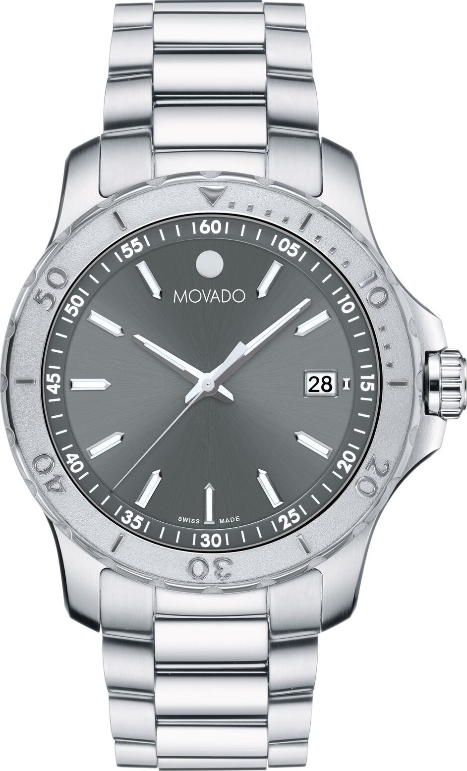Một phong cách thể thao pha trộn sự thanh lịch hiện đại. Đồng hồ Movado Active Sport dành cho nam, vỏ và dây đeo bằng thép không gỉ 40 mm, mặt số màu xám với kim và vạch chỉ giờ phát sáng, cửa sổ ngày, tinh thể sapphire, bộ máy Swiss Quartz