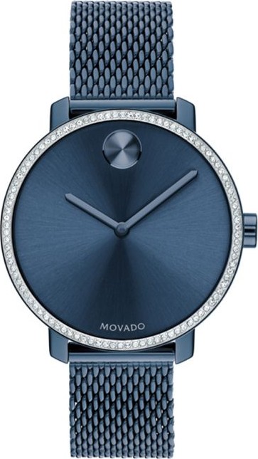 Thương hiệu: MOVADO Dòng sản phẩm: ĐẬM Dành cho: Nữ Phong trào: Thạch anh Kích thước vỏ: 34 mm Chất liệu vỏ: Thép không gỉ Màu mặt số: Xanh lam Loại mặt số / Kim: Analog / Xanh pha lê: K1 Viền khoáng: Dây cố định Chất liệu: Loại/Màu dây thép không gỉ : Vòng đeo tay/ Khả năng chống nước màu xanh lam: 30 mét / 100 feet Chức năng: Giờ, Phút Xuất xứ: Swiss Mad