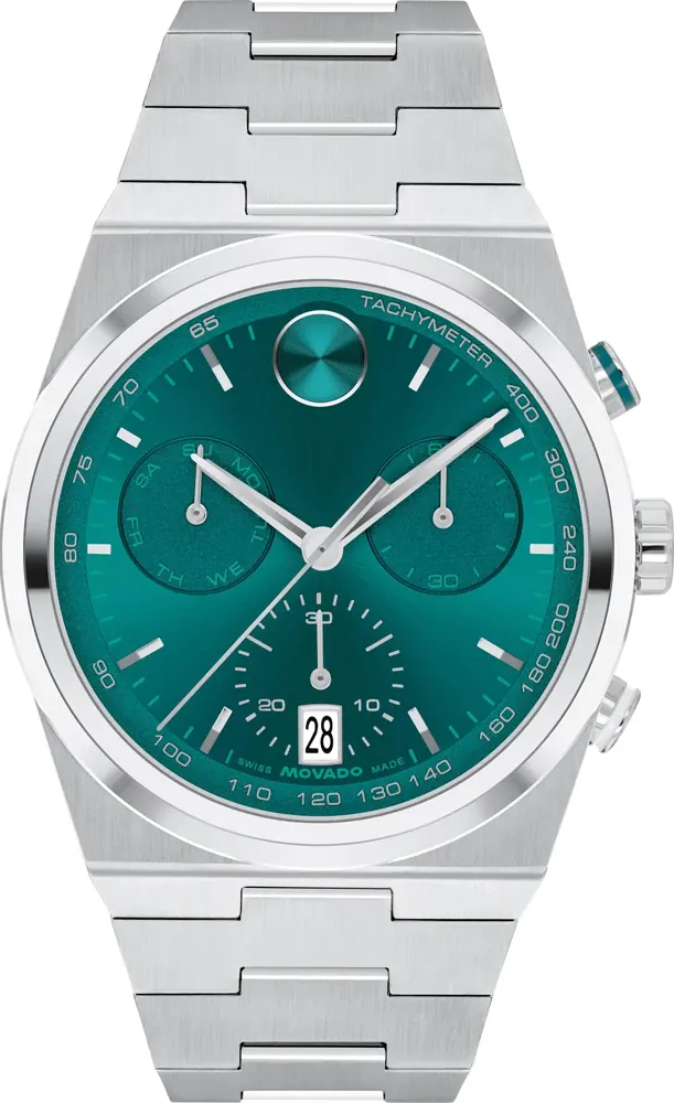 Đồng hồ Movado này có vỏ làm bằng thép không gỉ với đường kính 42 mm và được trang bị dây đeo bằng thép không gỉ. Đồng hồ có độ chống nước 3 ATM. Điều này có nghĩa là đồng hồ có khả năng chống nước bắn vào. Khả năng chống nước 3 Bar (Rửa tay). Màu mặt số Xanh lá cây. Màu kim (h-m-s): Bạc, Bạc, Bạc. Đường kính 42 mm. Chất liệu vỏ: Thép không gỉ. Hình dạng vỏ: Tròn. Màu vỏ: Bạc. Chất liệu vỏ sau: Thép không gỉ. Nắp lưng: Khóa bấm. Chất liệu: Pha lê Sapphire. Núm vặn: Núm vặn. Thông tin về dây đeo. Chất liệu dây đeo: Thép không gỉ. Màu khóa: Bạc. Màu dây đeo: Bạc