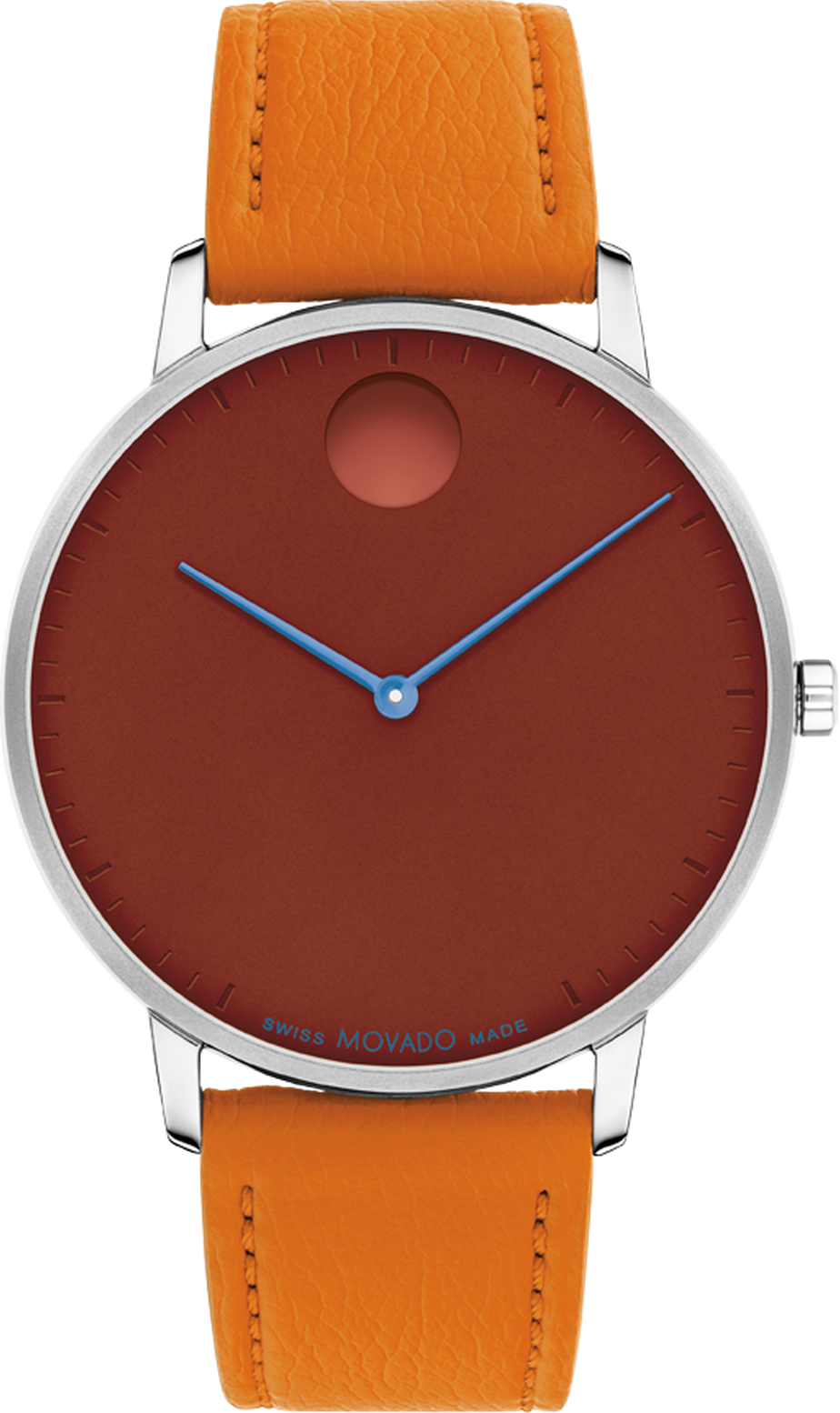 Một sự mới mẻ, thú vị trên thiết kế cực kỳ hiện đại, siêu tối giản. Thêm màu sắc nổi bật cho mọi diện mạo với chiếc đồng hồ Face rực rỡ này. Vỏ thép không gỉ 41mm của nó có mặt số màu đỏ ấm áp với các kim màu xanh thanh mảnh và một dấu chấm lõm vào lúc 12 giờ. Chúng tôi đã kết hợp nó với một dây đeo màu cam sáng được chế tác từ da thuần chay có khóa đóng.