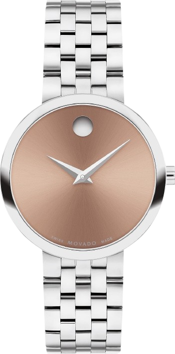 Vỏ thép không gỉ với dây đeo bằng thép không gỉ tông màu bạc. Vành thép không gỉ cố định. Mặt đồng hồ bằng đất sét. Kiểu mặt đồng hồ: Analog. Bộ máy thạch anh. Tinh thể sapphire chống trầy xước. Mặt sau vỏ đồng hồ chắc chắn. Hình dạng vỏ tròn, kích thước vỏ: 29,5 mm. Khóa gập có chốt an toàn. Chống nước ở độ sâu 30 mét / 100 feet. Chức năng: giờ, phút. Dòng Museum Classic. Kiểu đồng hồ thường ngày. Nhãn đồng hồ: Swiss Made. Đồng hồ Movado Museum Classic Quartz dành cho nữ
