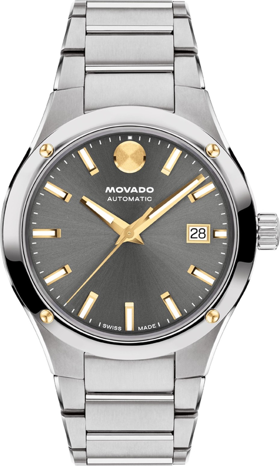 Đồng hồ Museum Imperiale nâng tầm sự tinh tế thường nhật với kiểu dáng hiện đại, thanh lịch, chất liệu thể thao cao cấp và sự phát triển từ thiết kế biểu tượng của Movado. Chiếc đồng hồ thép không gỉ 40mm này sở hữu mặt số màu xám lạnh với các điểm nhấn mạ vàng và cửa sổ hiển thị ngày, dây đeo ba hàng được thiết kế tinh tế, các chi tiết phát quang Super-LumiNova® của Thụy Sĩ và mặt sau trong suốt. Mặt số màu xám lạnh với các vạch chỉ giờ. Đường kính vỏ: 40mm. Chất liệu vỏ: thép không gỉ và thép không gỉ 904L với lớp phủ PVD vàng nhạt. Mặt kính sapphire. Khả năng chống nước: 100 mét. Bộ máy: máy tự động Thụy Sĩ. Dây đeo: dây đeo liên kết bằng thép không gỉ. Thời gian dự trữ năng lượng: 41 giờ. Hình dạng đồng hồ: tròn. Độ dày vỏ: 11,2mm. Chiều rộng dây đeo: 14mm.