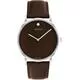 Biểu tượng của thiết kế hiện đại. Đồng hồ Movado Signature, vỏ thép không gỉ 40mm, mặt số màu nâu, dây da màu nâu, mặt kính sapphire, bộ máy thạch anh Thụy Sĩ. Khả năng chống nước 30 mét.