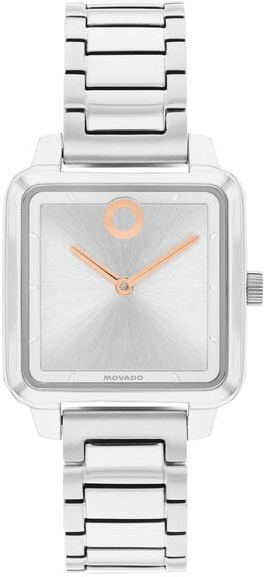 Chiếc đồng hồ bóng bẩy này tỏa sáng với thiết kế tối giản và hiện đại. Đồng hồ Movado Trend hình chữ nhật dành cho nữ, vỏ và dây đeo bằng thép không gỉ 27mm, mặt số màu bạc, K1 Mineral, Bộ máy Quartz. Mặt số màu bạc, họa tiết Museum Metallic với chấm phẳng. Đường kính vỏ 27. Chất liệu vỏ: Thép không gỉ. Mặt kính: K1 Mineral. Khả năng chống nước: 3 ATM. Bộ máy: Bộ máy Quartz. Dành cho nữ. Dây đeo: Dây đeo bằng thép không gỉ.