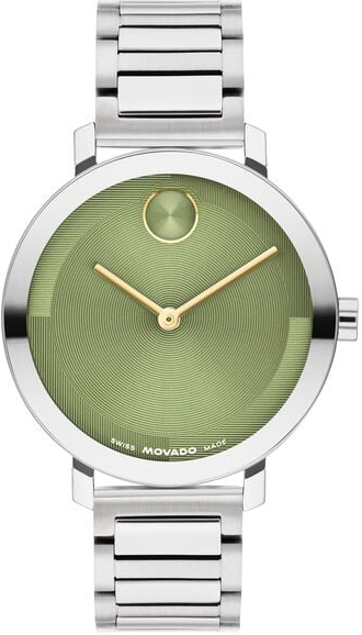Đồng hồ Movado Trend dành cho nữ, vỏ và dây đeo bằng thép không gỉ 34mm, mặt số màu xanh lá cây, khoáng K1, Bộ máy thạch anh Thụy Sĩ. Mặt số Bảo tàng màu xanh lá cây có chấm phẳng. Đường kính vỏ 34. Chất liệu vỏ: Thép không gỉ. Chế tác tinh thể: Khoáng K1. Khả năng chống nước: 3 ATM. Bộ máy: Bộ máy thạch anh Thụy Sĩ. Dành cho nữ. Dây đeo bằng thép không gỉ