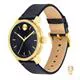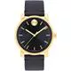 Đồng hồ Movado Trend dành cho nam, vỏ thép mạ ion màu vàng nhạt 41mm, dây da xanh navy, mặt số xanh navy, khoáng K1, bộ máy thạch anh Thụy Sĩ. Khả năng chống nước 3 ATM
