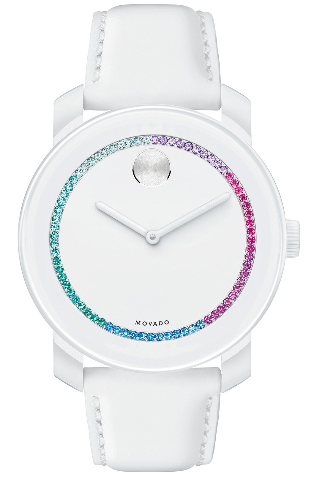 Movado Unisex Swiss Bold White Leather Strap Watch 42mm