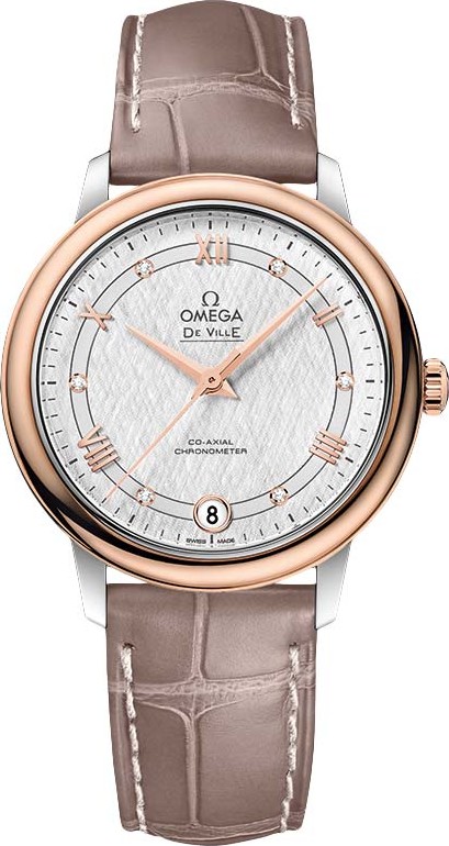 Chiếc De Ville Prestige này được trang bị dây đeo bằng da màu nâu sẫm và được trang bị bộ máy OMEGA Co-Axial Chronometer Calibre 2500.