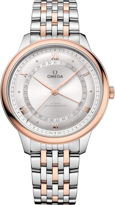 De Ville Prestige nổi tiếng là một trong những bộ sưu tập cổ điển và tinh tế nhất của OMEGA. Là sự lựa chọn vượt thời gian kể từ năm 1994, các mẫu đồng hồ ngày nay cung cấp nhiều loại vật liệu và màu sắc phù hợp với mọi dịp. Chiếc đồng hồ 42 mm này được chế tác bằng thép không gỉ và vàng Sedna™ 18K. Thiết kế độc đáo của nó bao gồm mặt số màu bạc opaline hình vòm, với đường ray phút đường sắt ở vùng ngoài cùng, cùng với các vạch chỉ giờ xen kẽ giữa số La Mã và số cabochon. Điểm đặc biệt nhất của mặt số là vòng lịch ngày trung tâm được hoàn thiện bằng satin. Ngày được hiển thị bằng kim hình trăng lưỡi liềm ở trung tâm bằng vàng Sedna™ PVD, cho biết ngày hiện tại trên một vòng số Ả Rập màu xám đậm. Được trình bày trên dây đeo bằng thép không gỉ và vàng Sedna™ 18K, chiếc De Ville Prestige này được trang bị bộ máy Co-Axial Master Chronometer Calibre 8936, có thể được nhìn thấy qua tinh thể sapphire ở mặt sau vỏ đồng hồ. Khoảng cách giữa các vấu 19 mm. Khoảng cách từ vấu này đến vấu kia 48,95 mm. Độ dày 12,27 mm. Đường kính vỏ 42 mm. Vỏ thép ‑ vàng Sedna™. Mặt số màu bạc. Mặt kính sapphire hình vòm, chống xước, có lớp phủ chống phản quang bên trong. Khả năng chống nước 3 bar (30 mét / 100 feet). Tổng trọng lượng sản phẩm (xấp xỉ) 136 g. Bộ máy OMEGA 8936. Kiểu chuyển động Tự lên dây cót. Dự trữ năng lượng 60 giờ
