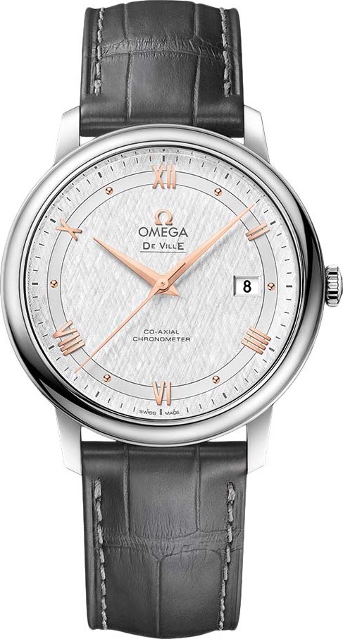 Chiếc De Ville Prestige này được trang bị dây đeo bằng da màu xám và được trang bị bộ máy OMEGA Co-Axial Chronometer Calibre 2500.