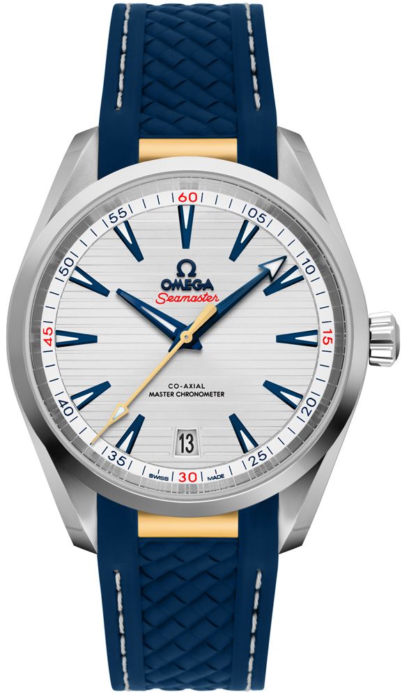 Để kỷ niệm sự liên kết của OMEGA với Ryder Cup, chiếc đồng hồ này mang màu sắc của logo của giải đấu cũng như các đặc điểm thiết kế mới nhất của Seamaster Aqua Terra.