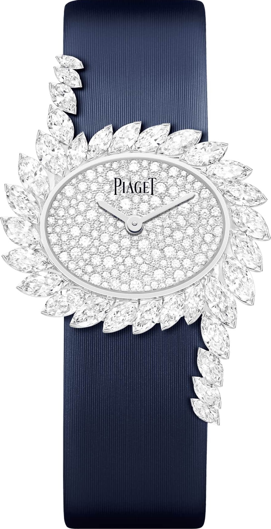 Khám phá chiếc đồng hồ vàng trắng Limelight Gala trang sức cao cấp này với những viên kim cương cắt hạt dẻ rực rỡ. Là biểu hiện của sự quyến rũ nữ tính và cổ điển, trang sức cao cấp Limelight Gala là chiếc đồng hồ kim cương vàng trắng không ngừng khơi dậy sự sáng tạo. Chiếc đồng hồ kim cương này có mặt số hình bầu dục tinh tế bằng vàng trắng, đính những viên kim cương cắt sáng rực rỡ trong khung cảnh tuyết rơi. Những viên kim cương có nhiều kích cỡ khác nhau để tạo ra kết cấu phóng đại ánh sáng khi chiếu qua những viên đá quý này. Như một sự ca ngợi chiếc đồng hồ Limelight Gala nguyên bản từ năm 1973, chiếc đồng hồ trang sức cao cấp được đính những viên kim cương cắt kiểu marquise này có vấu bất đối xứng đặc trưng của bộ sưu tập. Một sự lựa chọn tình cờ cho tác phẩm này, vì vết cắt này là để tưởng nhớ Marquise de Pompadour người Pháp. Vua Louis XV đã tạo ra viên đá quý này theo hình đôi môi của bà. Một đường cắt thơ mộng và gợi cảm, hoàn hảo cho một chiếc đồng hồ tôn vinh sự nữ tính. Vào những năm 1960, kiểu thiết kế móng vuốt đã được phát triển và vẫn được sử dụng cho đến ngày nay vì nó làm nổi bật những viên kim cương tuyệt đẹp này. Một chiếc đồng hồ quyến rũ lôi cuốn bằng những nét độc đáo để tạo ra một thiết kế nguyên bản gắn liền với DNA thiết kế của Piaget.