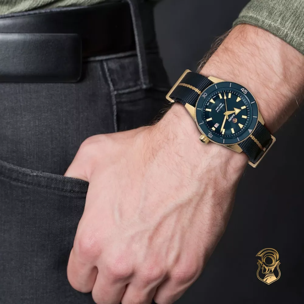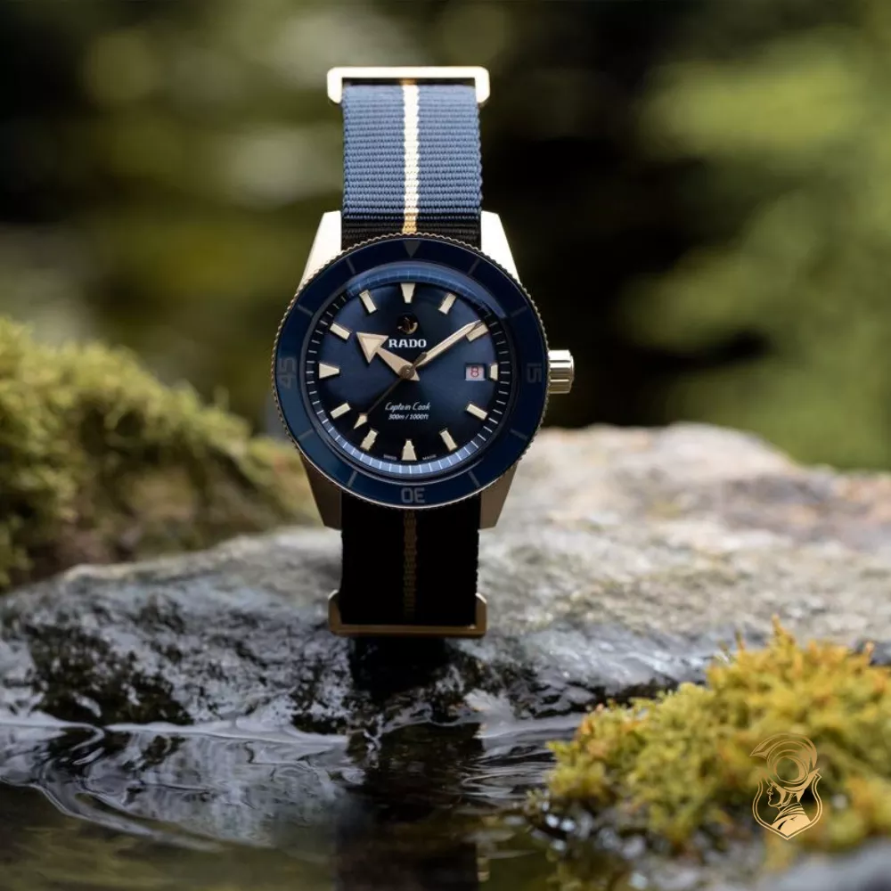 Diện mạo nguyên bản từ năm 1962 được hiện thực hóa dưới hình thức mới và cải tiến cho thế kỷ XXI. Với các chi tiết cổ điển và kiểu dáng đúng với nguyên bản, cùng các tính năng cập nhật giúp nó phù hợp với người đeo hiện đại, Captain Cook là chiếc đồng hồ được thiết kế để đứng vững trước thử thách của thời gian. Mẫu này có vỏ bằng đồng cũng như dây đeo NATO được làm từ vải tổng hợp bền bỉ, là sự kết hợp hoàn hảo giữa vật liệu cổ điển và hiện đại. Phong trào: Tự động. Kích thước: 42,0mm. Độ dày: 12,5 mm. Khả năng chống nước: Chống nước 30 bar (300 m). Vương miện: Vương miện có vít. Pha lê: Tinh thể sapphire có lớp phủ chống phản chiếu. Vỏ sau: Vỏ sau có vít. Chất liệu vỏ: Đồng, gốm công nghệ cao. Giới tính: Quý ông. hình dạng: Tròn. Quay số: màu xanh. Hiển thị ngày: Có. Dự trữ năng lượng chuyển động: lên tới 80 giờ. Dây: Vải