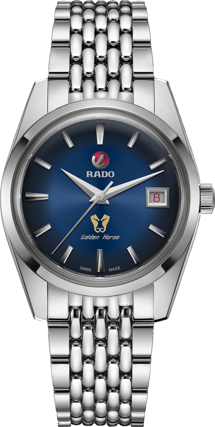 Phiên bản giới hạn: Phiên bản giới hạn gồm 1957 chiếc. Đúng như nguyên bản năm 1957, Golden Horse Limited Edition có vỏ 37 mm, mặt số cong và biểu tượng mỏ neo chuyển động đặc trưng của chúng tôi. Đó là dấu hiệu cho thấy chất lượng Rado do Thụy Sĩ sản xuất cũng như trước đây. Với khả năng dự trữ năng lượng vượt trội lên đến 80 giờ nhờ bộ máy ETA C07 chất lượng cao, đây là sự kết hợp hoàn hảo giữa quá khứ và hiện tại. Bộ máy: Tự động. Kích thước: 37,0mm. Tổng trọng lượng: 106 gam. Độ dày: 10,8 mm. Khả năng chống nước: Chống nước 5 bar (50 m). Pha lê: Tinh thể sapphire có lớp phủ chống phản chiếu. Quay số: màu xanh. Dự trữ năng lượng chuyển động: lên tới 80 giờ. Vòng đeo tay: Thép không gỉ