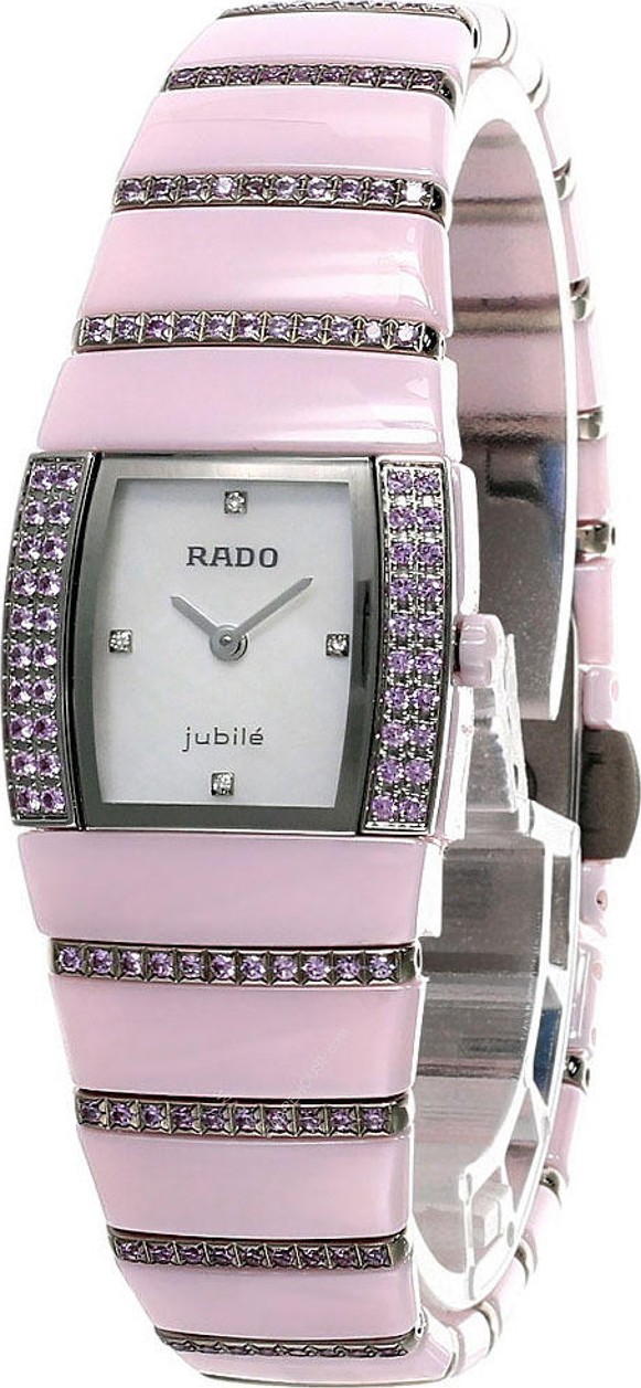 Thương hiệu: Rado Dòng sản phẩm: Sintra Jublie Giới tính: Phong trào nữ: Thạch anh Chất liệu vỏ: Gốm Kích thước vỏ: 22,5 mm Màu mặt số: Xà cừ Loại mặt số Điểm đánh dấu kim: Bạc Analog Tinh thể kim cương: Chống trầy xước Viền sapphire: Chất liệu dây cố định: Màu dây gốm Nút ấn Clasp màu hồng Khả năng chống nước gấp đôi: 30 mét 100 feet. Chức năng Giờ Phút