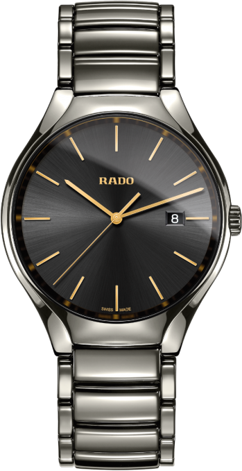 Mặt số màu tối tương phản làm tăng thêm kịch tính cho chiếc Rado True không thể cưỡng lại này. Với kích thước 40 mm, chiếc đồng hồ này được chế tác từ gốm công nghệ cao plasma, trông giống kim loại nhưng mang lại những lợi ích của gốm: không gây dị ứng, nhẹ và chống trầy xước. Vỏ và dây đeo bằng gốm plasma công nghệ cao. Vành bezel gốm plasma cố định. Mặt số màu đen với kim và vạch chỉ giờ màu vàng. Kiểu mặt số: Analog. Hiển thị ngày ở vị trí 3 giờ. Bộ máy Quartz. Mặt kính sapphire chống trầy xước. Núm vặn kéo/đẩy. Nắp lưng chắc chắn. Kích thước vỏ: 40 mm. Kiểu dáng vỏ tròn. Khóa cài. Khả năng chống nước ở độ sâu 50 mét / 165 feet.