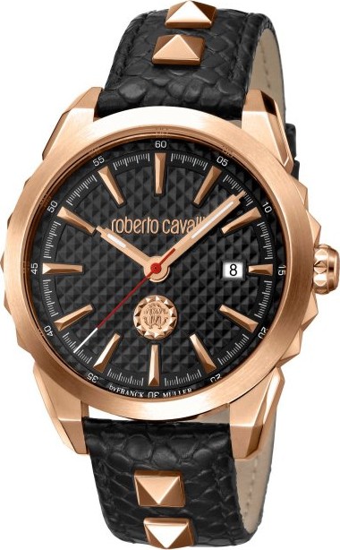 vỏ thép IP 42 mm; Mặt số màu đen có logo Roberto Cavalli vàng; Dây đeo bằng da thật có khóa triển khai; Phong trào thạch anh Ronda 515; Mặt kính sapphire chống xước; Chống nước ở độ sâu lên tới 50 mét/160 feet; Thụy Sĩ; Bảo hành quốc tế hai năm