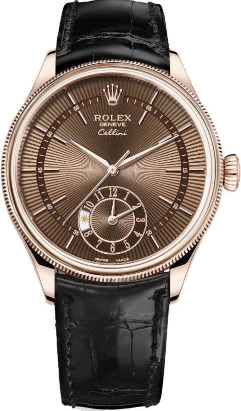 Mặt số guilloche của Cellini Dual Time tôn vinh những quy tắc vượt thời gian của chế tạo đồng hồ cổ điển, đồng thời diễn giải lại chúng với nét hiện đại thanh lịch. Các vạch chỉ giờ đính kéo dài, cách điệu được chia thành vạch phút đã được di chuyển về phía giữa mặt số, gần đầu kim hơn. Giống như trên tất cả đồng hồ Rolex, các chi tiết trang trí và vương miện Rolex được chế tác bằng vàng 18 ct.