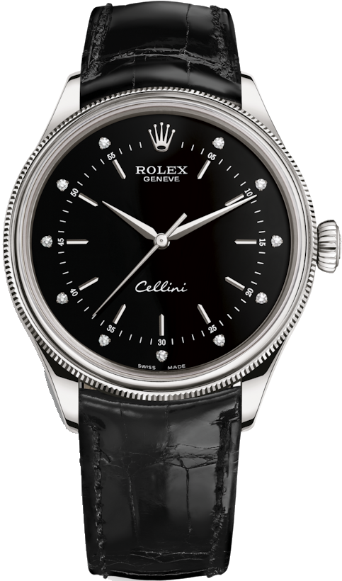 Mặt số đơn giản, rõ ràng của Cellini Time tôn vinh các quy tắc vượt thời gian của chế tạo đồng hồ cổ điển, đồng thời diễn giải lại chúng với nét hiện đại thanh lịch. Các vạch chỉ giờ đính kéo dài, cách điệu được chia thành vạch phút đã được di chuyển về phía giữa mặt số, gần đầu kim hơn. Giống như trên tất cả đồng hồ Rolex, các chi tiết trang trí và vương miện Rolex được chế tác bằng vàng 18 ct.