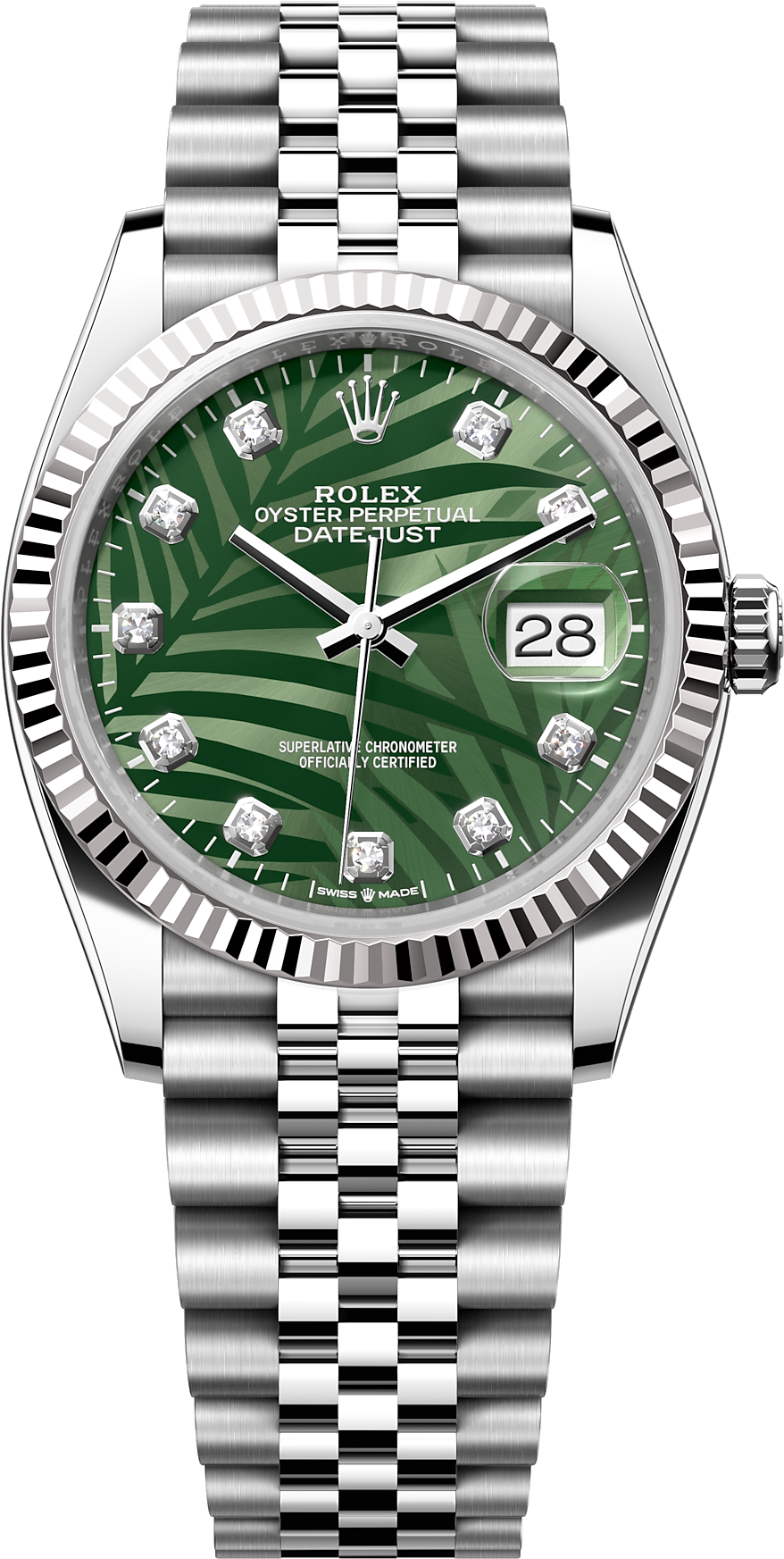 Các nhà thiết kế của thương hiệu đã sử dụng phương pháp hoàn thiện tia mặt trời truyền thống – một đặc điểm đặc trưng của mặt số Rolex – làm nền trên đó họa tiết được khắc bằng tia laser femto giây, sử dụng các xung điện từ siêu ngắn để đánh dấu tinh xảo bề mặt. Lấy cảm hứng từ thảm thực vật tươi tốt, họa tiết 'cây cọ' mô tả những nhánh cọ có lá xếp chồng lên nhau tạo ra hiệu ứng ánh sáng và bóng râm.