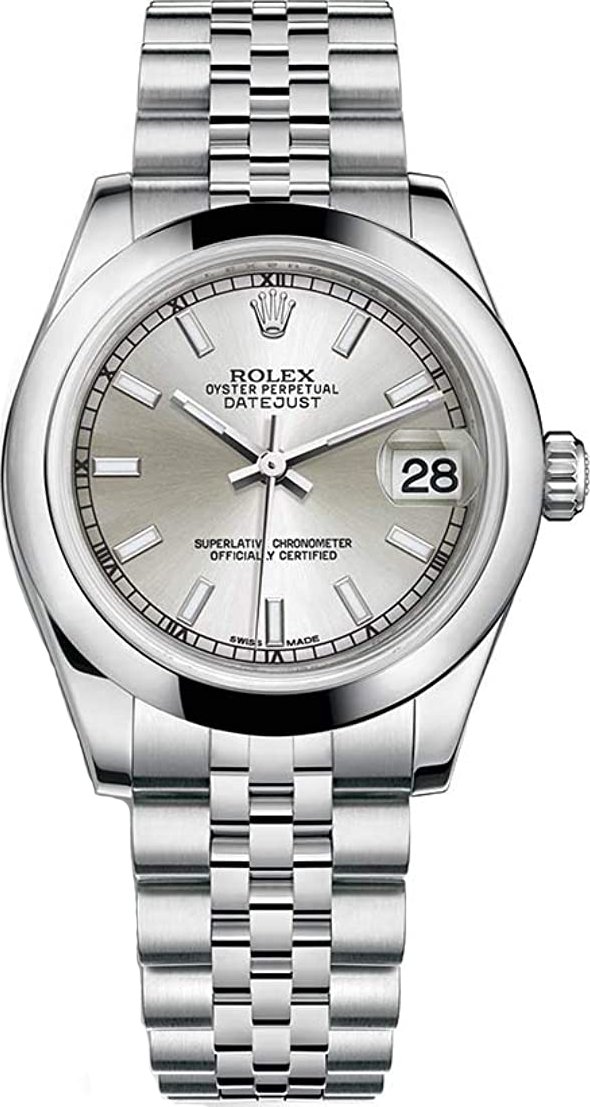 Sự phản chiếu ánh sáng trên các mặt vỏ và vấu làm nổi bật hình dáng thanh lịch của vỏ Oyster 31 mm được trang bị đai kính dạng vòm. Về mặt thẩm mỹ, Datejust đã trải qua nhiều thời đại, trong khi vẫn giữ được những quy tắc lâu dài tạo nên nó, đặc biệt là ở các phiên bản truyền thống, một trong những chiếc đồng hồ được công nhận và dễ nhận biết nhất.