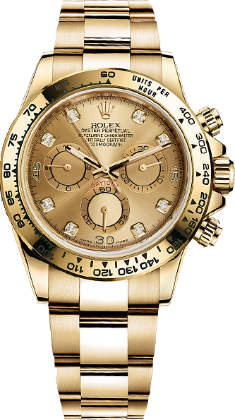 Rolex Cosmograph Daytona, được giới thiệu vào năm 1963, được thiết kế để đáp ứng nhu cầu của các tay đua chuyên nghiệp. Với đồng hồ bấm giờ có độ tin cậy cao và vành đồng hồ có thang đo tốc độ, nó cho phép người lái xe đo một cách hoàn hảo tốc độ trung bình lên tới 400 km hoặc dặm một giờ tùy theo lựa chọn của họ. Một biểu tượng vĩnh viễn gắn liền với tên tuổi và chức năng của thế giới đua xe thể thao hiệu suất cao.