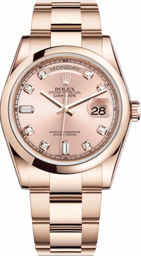 Được giới thiệu lần đầu tiên vào năm 1956, Day-Date là chiếc đồng hồ đầu tiên trên thế giới. Chiếc đồng hồ đầu tiên cho biết ngày trong tuần được đánh vần đầy đủ. Được nhiều nhà lãnh đạo thế giới đeo, Day-Date có sẵn màn hình hiển thị ngày riêng biệt với nhiều lựa chọn ngôn ngữ.