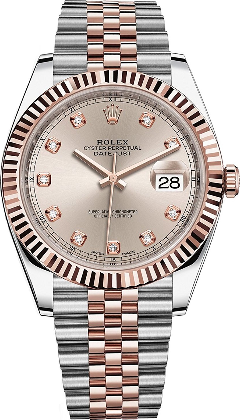 Chịu ảnh hưởng của Datejust tiên phong, ngày trên Datejust 41 được hiển thị trong cửa sổ ở vị trí 3 giờ và thay đổi tức thời vào lúc nửa đêm trong vài phần nghìn giây. Thấu kính Cyclops trên mặt kính, được Rolex phát minh vào năm 1953, phóng to ngày để dễ đọc.