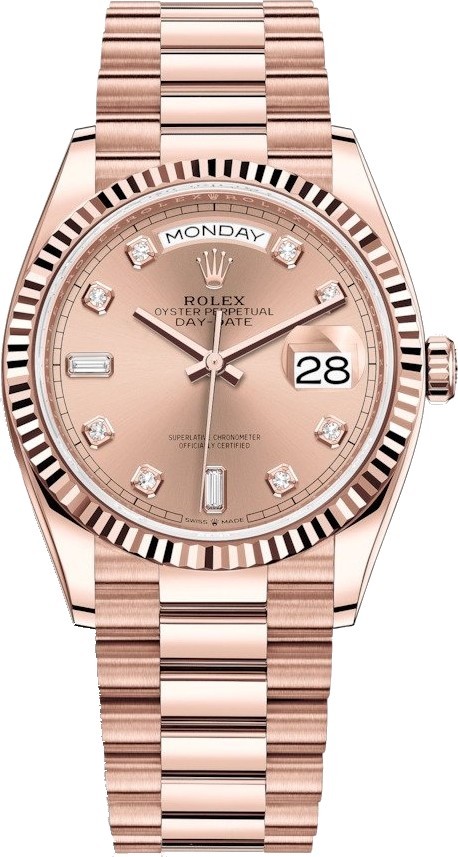 Được giới thiệu lần đầu tiên vào năm 1956, Day-Date là chiếc đồng hồ đầu tiên trên thế giới. Chiếc đồng hồ đầu tiên cho biết ngày trong tuần được đánh vần đầy đủ. Được nhiều nhà lãnh đạo thế giới đeo, Day-Date có sẵn màn hình hiển thị ngày theo yêu cầu riêng với nhiều lựa chọn ngôn ngữ.