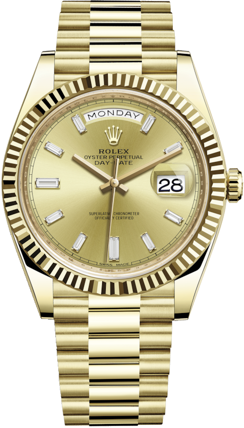 Được giới thiệu lần đầu tiên vào năm 1956, Day-Date là chiếc đồng hồ đầu tiên trên thế giới. Chiếc đồng hồ đầu tiên cho biết ngày trong tuần được đánh vần đầy đủ. Được nhiều nhà lãnh đạo thế giới đeo, Day-Date có sẵn màn hình hiển thị ngày theo yêu cầu riêng với nhiều lựa chọn ngôn ngữ.