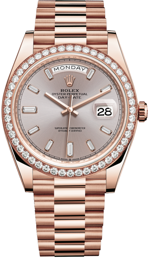 Được giới thiệu lần đầu tiên vào năm 1956, Day-Date là chiếc đồng hồ đầu tiên trên thế giới. Chiếc đồng hồ đầu tiên cho biết ngày trong tuần được đánh vần đầy đủ. Được nhiều nhà lãnh đạo thế giới đeo, Day-Date có sẵn màn hình hiển thị ngày theo yêu cầu riêng với nhiều lựa chọn ngôn ngữ.