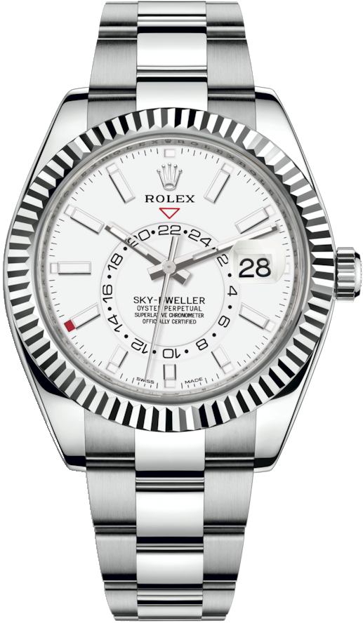Sky-Dweller được trang bị dây đeo Oyster liên kết chắc chắn bằng Oystersteel đối với phiên bản Rolesor màu trắng hoặc đối với phiên bản Rolesor màu vàng, dây đeo Oyster kết hợp Oystersteel và vàng vàng 18 ct. Dây đeo Oyster được hưởng lợi từ hệ thống gắn ẩn mới bên dưới đai kính đảm bảo tính liền mạch về mặt hình ảnh giữa dây đeo và vỏ. Nó được trang bị khóa Oysterclasp gấp và còn có hệ thống mở rộng nhanh chóng Easylink được cấp bằng sáng chế khéo léo của Rolex cho phép người đeo dễ dàng tăng chiều dài dây đeo thêm khoảng 5 mm để tăng thêm sự thoải mái trong mọi trường hợp.