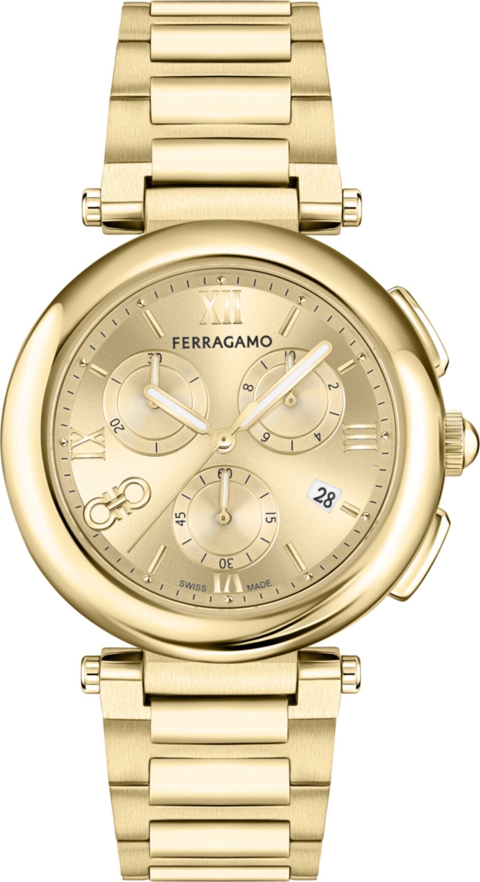 Ferragamo Legacy là chiếc đồng hồ hoàn hảo dành cho những người phụ nữ thể thao và tinh tế, những người yêu thích những hình dạng mang tính biểu tượng và không bao giờ muốn từ bỏ sự thanh lịch và chú ý đến các chi tiết. Chiếc đồng hồ bấm giờ này có thân vỏ 40mm bao quanh mặt số sunray với biểu tượng Gancini kép mang tính biểu tượng được gắn ở vị trí 8 giờ.