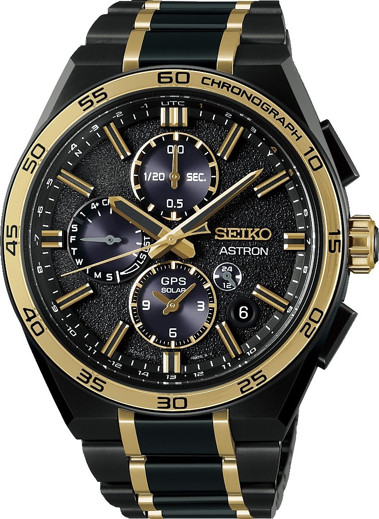 Phiên bản giới hạn 1.450 chiếc. Năm 2026, Seiko sẽ kỷ niệm 145 năm thành lập. Kể từ khi thành lập vào năm 1881, công ty đã coi đồng hồ như một giải pháp tiềm năng cho các thách thức xã hội, liên tục theo đuổi sự đổi mới trong khi vẫn giữ vững triết lý của người sáng lập Kintaro Hattori là “luôn đi trước một bước so với những người khác”. Chiếc đồng hồ bấm giờ hai múi giờ GPS Solar mới này tôn vinh tinh thần đổi mới của Astron. Tượng trưng cho sự thành công và thịnh vượng, các điểm nhấn màu vàng tô điểm cho mọi bộ phận của đồng hồ, từ mặt số và dây đeo đến vỏ. Vòng bezel có lớp kính sapphire màu vàng tạo thêm chiều sâu và kích thước. Ngay cả các vạch màu vàng ở vị trí 1, 4 và 5 trên thang UTC cũng là một sự tri ân tinh tế cho lễ kỷ niệm 145 năm. Số hiệu máy: 5X83. Loại máy: GPS sola. Độ chính xác: ±15 giây mỗi tháng (không nhận tín hiệu GPS và ở nhiệt độ từ 5°C đến 35°C). Thời gian hoạt động dự trữ năng lượng: khoảng... Thời gian sử dụng pin: 6 tháng (khi sạc đầy). Chế độ tiết kiệm năng lượng: khoảng 2 năm. Số chân kính: 14. Chức năng: Chức năng chống sạc quá mức; Chức năng tiết kiệm năng lượng; Đồng hồ bấm giờ lên đến 12 giờ với độ chính xác 1/20 giây; Lịch vạn niên đến ngày 28 tháng 2 năm 2100; Chức năng giờ thế giới (38 thành phố); Chức năng giờ kép; Hiển thị ngày; Chỉ báo dự trữ năng lượng; Chức năng chuyển đổi thời gian (Chuyển đổi giữa mặt số chính và mặt số phụ); Chức năng thu tín hiệu GPS (Điều chỉnh múi giờ, điều chỉnh thời gian tự động, điều chỉnh thời gian thủ công); Chức năng hiển thị trạng thái thu tín hiệu vệ tinh; Chức năng hiển thị kết quả thu tín hiệu; DST (Giờ tiết kiệm ánh sáng ban ngày); Chức năng ngăn chặn việc thu tín hiệu GPS (chế độ trên máy bay); Chức năng tự động căn chỉnh vị trí kim. Chất liệu vỏ: Titan (lớp phủ siêu cứng). Độ dày: 14,4mm. Đường kính: 44,1mm. Khoảng cách giữa hai càng: 50,0mm. Mặt kính: Kính sapphire cong kép. Lớp phủ mặt kính: Lớp phủ siêu trong suốt. Khóa: Khóa gập ba với nút nhấn. Thông số sản phẩm: Chiều dài dây đeo 190.0mm. Khoảng cách giữa các càng đeo 14mm. Khả năng chống nước 10 bar. Khả năng chống từ trường 4.800 A/m. Có khắc chữ LIMITED EDITION ở mặt sau vỏ; Số seri được khắc ở mặt sau vỏ.