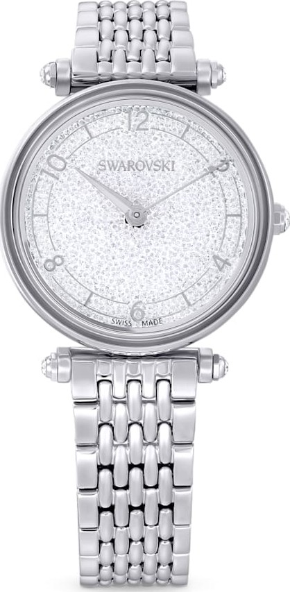 Chiếc đồng hồ Swarovski này thuộc dòng Crystalline Wonder của chúng tôi kết hợp một cách khéo léo giữa hình thức và chức năng. Khoảng 1.000 viên pha lê trong vỏ thép không gỉ tạo ra hiệu ứng lấp lánh rực rỡ. Vòng đeo tay bằng thép không gỉ và mặt số tông màu bạc trắng được tô điểm bằng các chữ số Ả Rập và thiên nga Swarovski ở vị trí 12 giờ, hoàn thiện thiết kế tinh xảo. Chiếc đồng hồ sản xuất tại Thụy Sĩ này có khả năng chịu nước lên đến 50m.