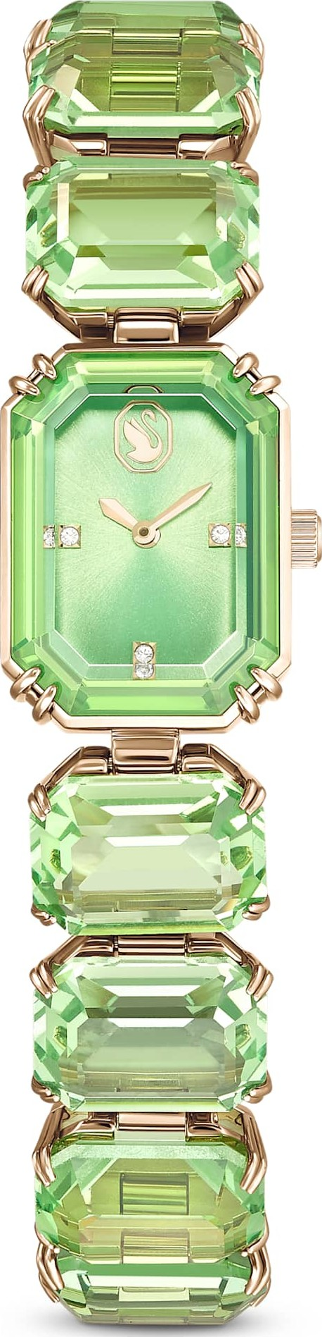 Lấy cảm hứng từ bộ sưu tập Millenia, chiếc đồng hồ đeo tay bắt mắt này mang đến vẻ ngoài nổi bật với màu sắc rực rỡ. Được chế tác tinh xảo từ một hàng pha lê hình bát giác với sắc xanh lá cây sống động, chiếc đồng hồ này có mặt số màu xanh lá cây, viền bezel đính pha lê và lớp hoàn thiện mạ vàng sâm panh. Đồng hồ có khả năng chống nước ở độ sâu 50m và là lựa chọn táo bạo để đeo riêng hoặc kết hợp với các đồng hồ khác. Lấy cảm hứng từ bộ sưu tập: Millenia. Kích thước vỏ: 7/8 x 5/8 inch. Độ dày vỏ: 1/4 inch. Chiều dài dây đeo (tối thiểu - tối đa): 4 7/8 - 7 1/2 inch. Chiều rộng dây đeo: 1/2 inch. Chất liệu: Pha lê, mạ PVD vàng hồng. Màu sắc: Xanh lá cây. Loại khóa: Khóa gập. Chất liệu dây đeo: Pha lê. Cơ chế: Thạch anh.
