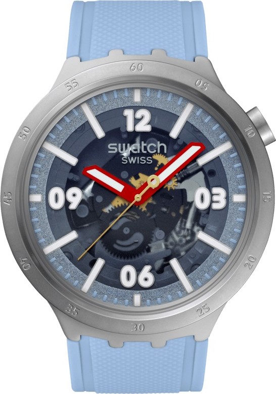 Chiếc đồng hồ ngoại cỡ này nổi bật với mặt số trong suốt có vòng ngoài lấp lánh màu xanh lam nhạt, các vạch chỉ giờ và chữ số in màu trắng có hiệu ứng phát sáng trong bóng tối và vòng phút in màu xanh lam nhạt. Kim giờ và kim phút màu đỏ có hiệu ứng phát sáng trong bóng tối và kim giây màu vàng chỉ giờ. Vỏ thép không gỉ phun cát với vành bezel và nút bấm phù hợp được bổ sung bởi dây đeo màu xanh lam nhạt mờ có họa tiết với các vòng màu xanh lam nhạt mờ và khóa nửa bằng thép không gỉ phun cát. Bộ máy: Thạch anh. Chống nước: 3 Bar. Đường kính: 47,00 mm. Độ dày: 13,30 mm. Khoảng cách giữa các vấu: 44,80 mm. Chất liệu dây đeo: Silicone. Chất liệu móc cài: Thép không gỉ. Khóa cài dây đeo: Khóa nửa. Chất liệu vỏ: Thép không gỉ. Màu sắc: Xanh lam. Màu dây đeo: Xanh lam. Màu mặt số: Xanh lam. Màu vỏ: Xám. Dòng sản phẩm: BIG BOLD