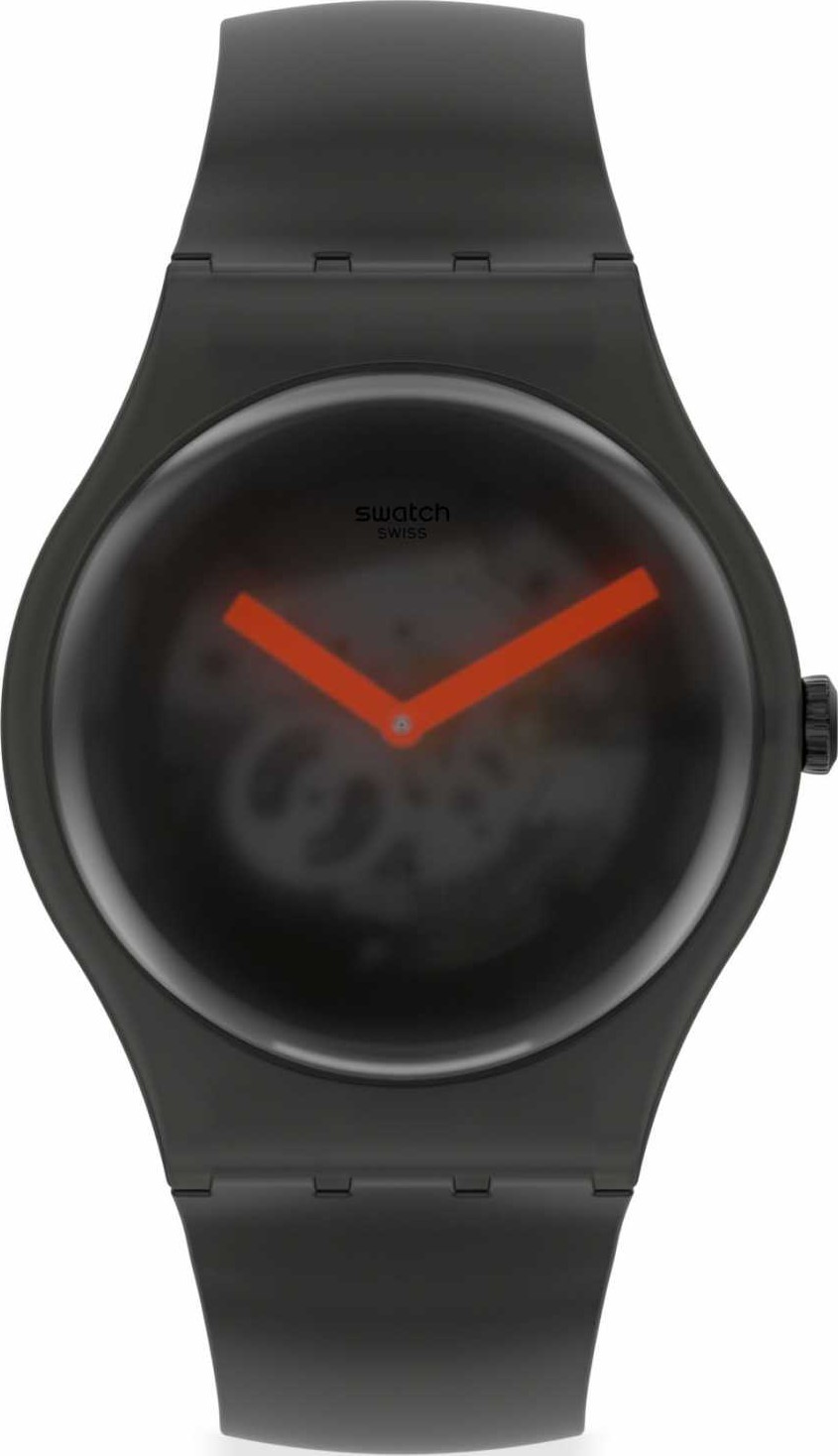 Vỏ nhựa màu đen với dây đeo silicon màu đen. Viền nhựa cố định màu đen. Mặt số trong suốt với bàn tay màu đỏ. Không có điểm đánh dấu. Loại quay số: Analog. Chuyển động thạch anh. Tinh thể thủy tinh plexi. Kéo/đẩy vương miện. Mặt sau trong suốt. Hình dạng vỏ tròn. Kích thước vỏ: 41 mm. Độ dày vỏ: 10 mm. Chiều rộng dải: 20 mm. Tang kẹp. Chống nước ở độ sâu 30 mét / 100 feet.