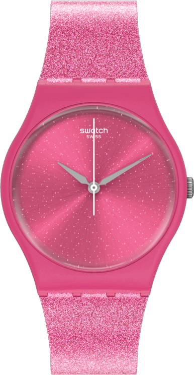 Vẻ đẹp ngày lễ này lấp lánh với dây đeo màu hồng mờ được chiếu sáng bằng kim tuyến nhiều màu, mặt số lấp lánh màu hồng với logo màu trắng và vỏ có nguồn gốc sinh học màu hồng.
