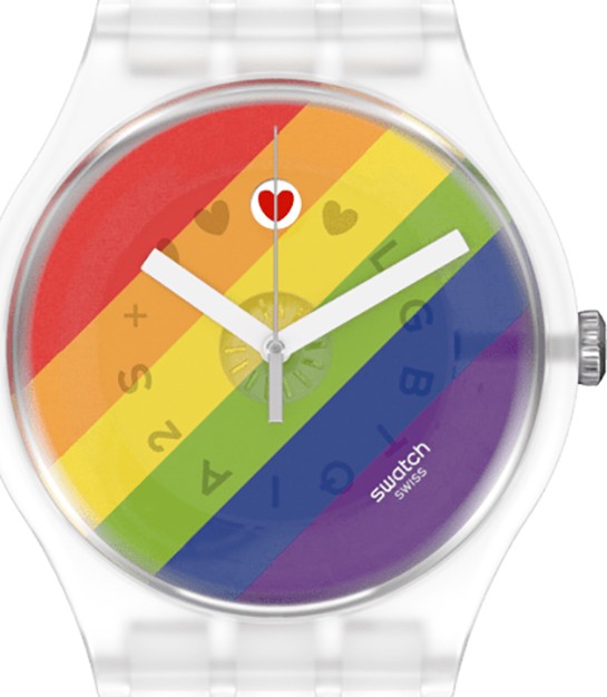 Chiếc đồng hồ cờ cầu vồng màu sắc sinh học dành cho quý ông mới này có mặt số bán trong suốt với các bản in nhiều màu và kính có nguồn gốc sinh học. Bánh xe lịch quay 24 giờ một lần nên mỗi ngày sẽ có một biểu tượng khác với lgbtqia2s xuất hiện. Vỏ có nguồn gốc sinh học trong suốt mờ trên dây đeo silicon mờ bán trong suốt hoàn thiện chiếc đồng hồ đáng tự hào này. Đi kèm trong bao bì tiêu chuẩn với một dải cầu vồng.
