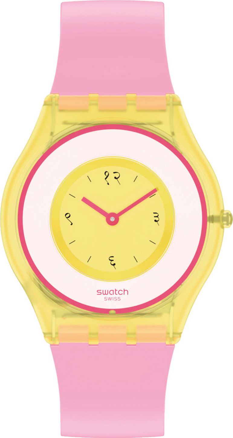 Vỏ vật liệu có nguồn gốc sinh học màu vàng (trong mờ) có dây đeo silicon màu hồng. Viền vật liệu có nguồn gốc sinh học màu vàng (trong suốt) cố định. Mặt số màu vàng và trắng với kim màu hồng và vạch chỉ giờ. Loại quay số: Analog. Chuyển động thạch anh. Tinh thể thủy tinh plexi. Kéo/đẩy vương miện. Vỏ sau chắc chắn. Hình dạng vỏ tròn. Kích thước vỏ: 34 mm. Độ dày vỏ: 5,4 mm. Chiều rộng dải: 17,6 mm. Tang kẹp. Chống nước ở độ sâu 30 mét / 100 feet.