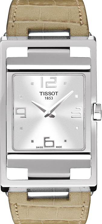 Dòng Tissot, My-T có vỏ bằng thép không gỉ 41mmx25mm, có viền cố định, mặt số màu bạc và mặt kính sapphire.