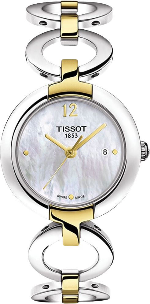 Vỏ thép không gỉ với vòng đeo tay bằng thép không gỉ với các liên kết PVD vàng. Viền cố định tông màu bạc. Mặt số xà cừ với kim đồng hồ tông vàng. Điểm đánh dấu hạt ở vị trí 3, 6 và 9 giờ. Một chữ số Ả Rập đánh dấu vị trí 12 giờ. Loại quay số: Analog. Hiển thị ngày ở vị trí 3 giờ.