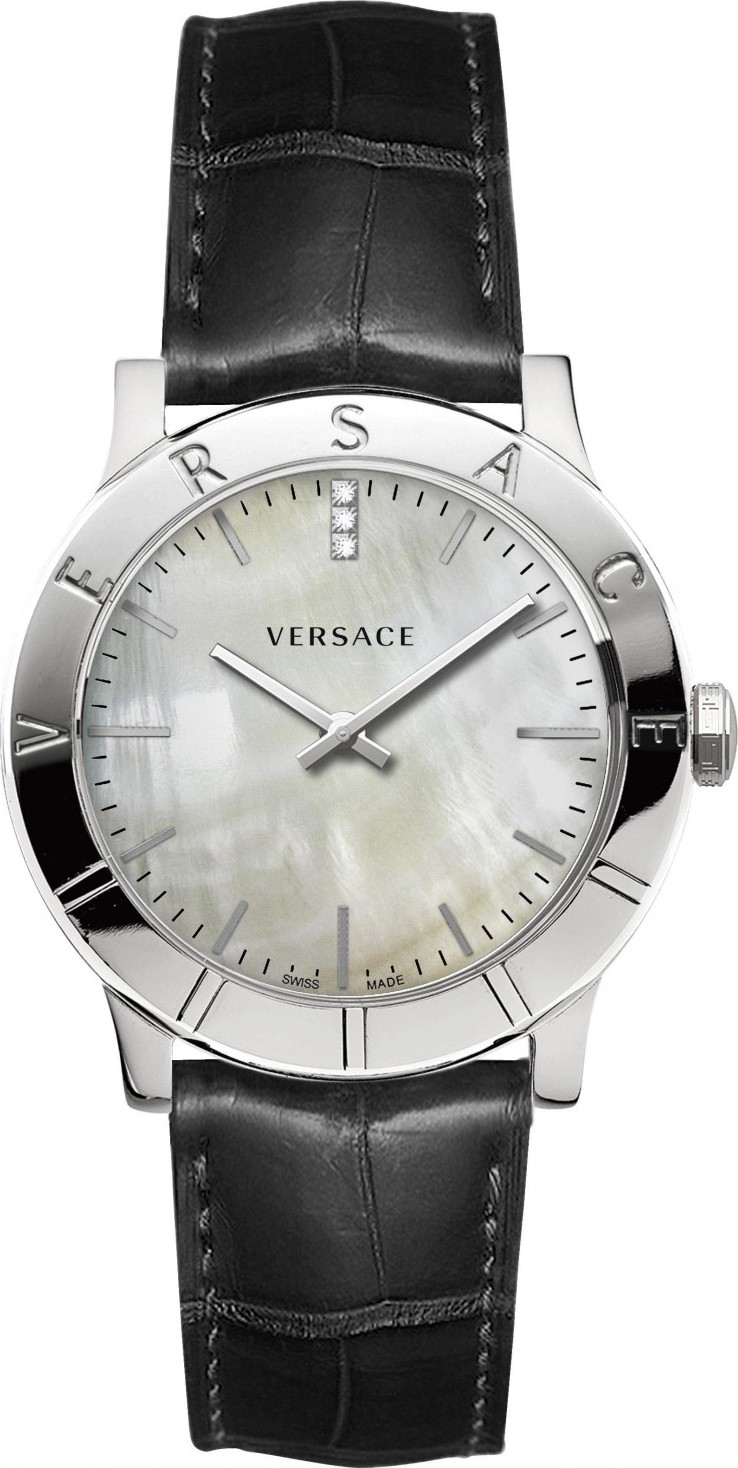 Dòng Versace, Acorn có vỏ bằng thép không gỉ 33mm, có viền cố định, mặt số bằng ngọc trai.