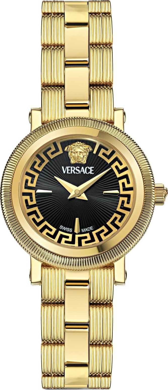 Vỏ đồng hồ mới này gợi nhớ đến các họa tiết mang tính biểu tượng và DNA độc đáo của thương hiệu. Medusa 3D ở vị trí 12h, Greca và dây đeo mắt xích ngang có kết cấu quý giá mang đến cho chiếc đồng hồ này một cá tính độc đáo và rất Versace.