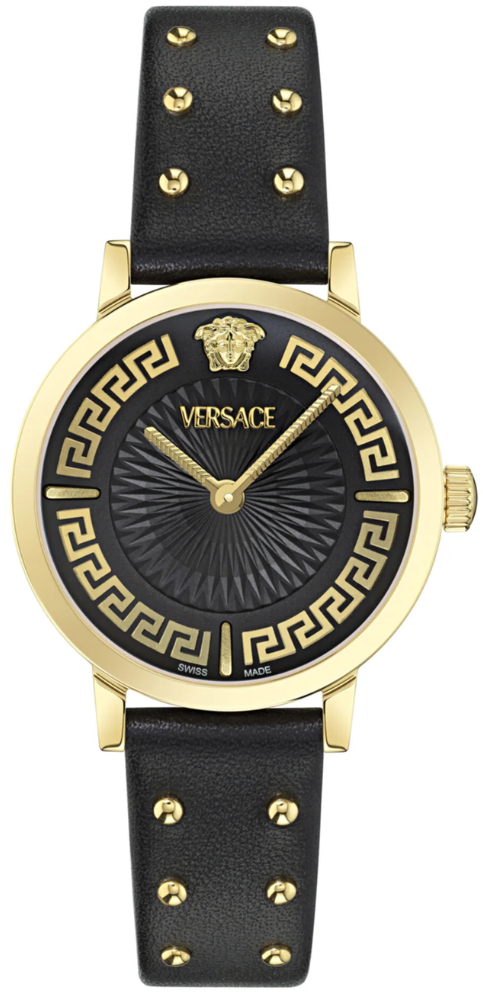 Đồng hồ Greca Fortuna của Versace kết hợp giữa di sản và hiện đại. Vỏ đồng hồ mang tính biểu tượng phản ánh các họa tiết phụ kiện của Versace, với họa tiết greca xiên trên vòng trên cùng để tạo chiều sâu. Các vấu đóng khung mặt số bằng logo Versace, cùng với hình ảnh medusa 3D nổi bật ở vị trí 12 giờ. Với họa tiết la greca 3D nổi tiếng và dây đeo được trang trí bằng đinh tán ba chiều, đồng hồ toát lên sự xa hoa và tượng trưng cho sự thanh lịch vượt thời gian.