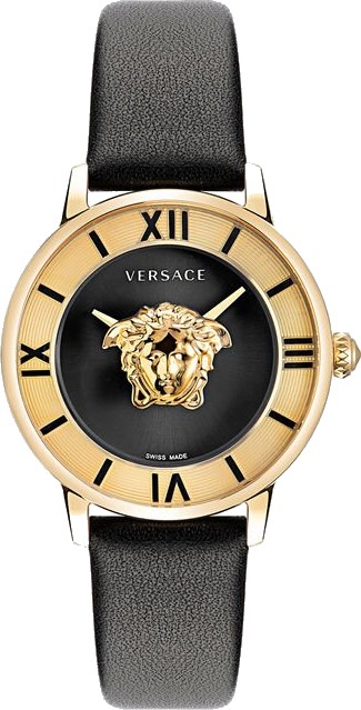 Nổi bật trên thiết kế cổ điển, chiếc đồng hồ đơn giản nhưng đầy ấn tượng này có hình Medusa ba chiều 'nổi' trên mặt số màu đen. Chiếc đồng hồ được tô điểm bằng các chữ số La Mã và chi tiết màu sâm panh trên mặt số. Hoàn thiện với dây đeo bằng da màu đen.
