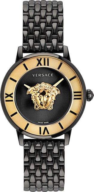 Mặt số: Vòng trong IP Champagne và mặt số màu đen có logo Versace