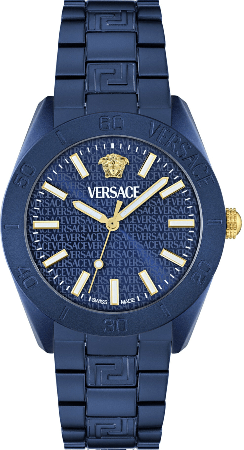 Bộ sưu tập Versace Superlight thể hiện sự tinh tế, sang trọng, kết hợp phong cách biểu tượng của Versace với các vật liệu tiên tiến để tạo ra những chiếc đồng hồ vừa thời trang vừa thân thiện với môi trường. Mỗi chiếc đồng hồ trong bộ sưu tập này đều được thiết kế tỉ mỉ, chú trọng đến từng chi tiết, mang đậm dấu ấn Versace kết hợp với những tiến bộ mới nhất trong công nghệ vật liệu. Bộ sưu tập mang đến nhiều phong cách đa dạng, phù hợp với mọi sở thích và dịp. Dù bạn đang tham dự một sự kiện trang trọng hay tận hưởng lối sống năng động, những chiếc đồng hồ này đều được thiết kế để nâng tầm phong cách của bạn một cách dễ dàng, đồng thời giảm thiểu tác động đến môi trường. Bằng việc giới thiệu bộ sưu tập sáng tạo này, Versace tiếp tục vượt qua những giới hạn của ngành chế tác đồng hồ xa xỉ, thiết lập những tiêu chuẩn mới về tay nghề thủ công, tính bền vững và phong cách. Vỏ nhôm xanh 42mm. Dây đeo nhôm xanh. Mặt số Guilloche xanh. Khóa bấm 5 ATM. Bộ máy Quartz 3 kim chỉ ngày sản xuất tại Thụy Sĩ